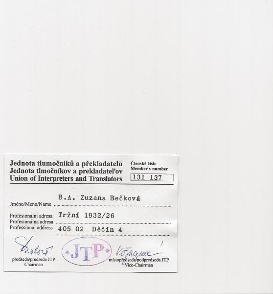 Jsem též členem Jednoty tlumočníků a překladatelů ČR.